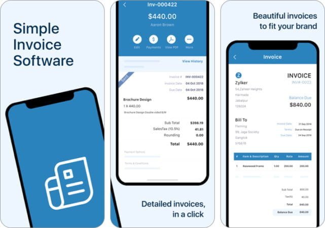 A Zoho népszerű név, ha az iPhone-ok legjobb számlaalkalmazásairól van szó. Kiemelkedő számlakészítési funkciókat kínál a költségek kategorizálása mellett, lehetővé teszi az idő és a számlák nyomon követését, az ügyfelek fizetési állapotának nyomon követését, valamint felhasználóbarát felületet kínál, amely még a nem könyvelők számára is megkönnyíti a dolgát.