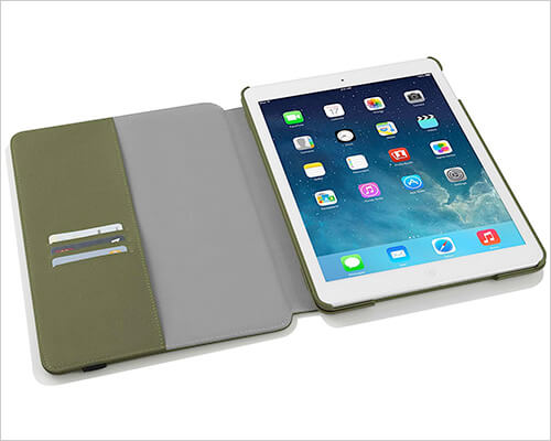 Az Incipio iPad Air fóliós tokja az egyik legjobb iPadhez készült fóliótok. Ez egy bőrtok (vegán bőr), amely olyan esztétikus megjelenést és érzetet kölcsönöz, amit a műanyag tokok aligha tud nyújtani. A tokot úgy tervezték, hogy teljesen és megfelelően illeszkedjen az iPad Air készülékhez, így úgy néz ki, mintha egy füzetet hordana. A tok levehető. Néhány kártyanyílás is található az üzleti és személyi igazolványok tárolására.