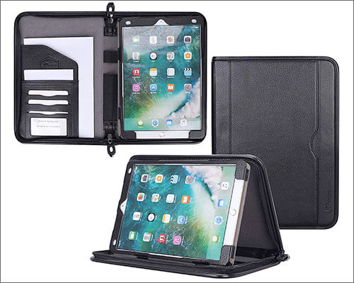 A Procase bőr tokja az iPad Pro -hoz négy különböző színű és prémium kompozíciós bőrből készült. A lágy belső tér biztosítja a karcolások elleni védelmet; Ezenkívül több résidővel is rendelkezik, amelyeket az iPad pro -n különböző angyalokkal nézhet meg. Egyéb tulajdonság a mágneses bezárásból és az auto ébresztésből/alvásból áll. Végül, a pontos vágások gyorsan hozzáférhetnek minden porthoz és funkcióhoz.