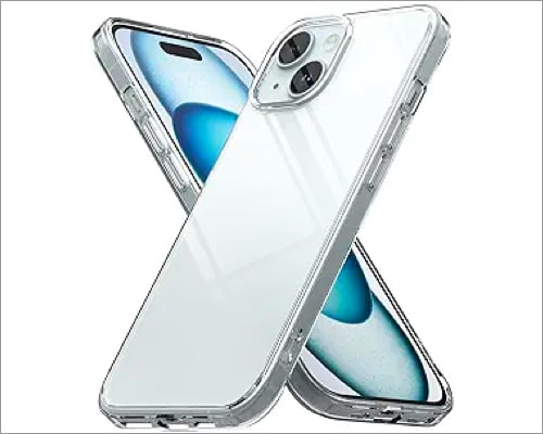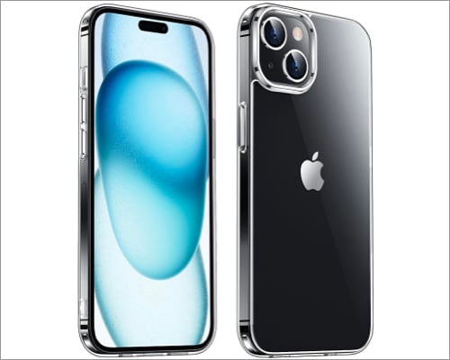 Ez nem csak arról szól, hogy a telefon biztonságban maradjon a napi dudoroktól és zúzódásoktól. Ennek az esetnek emelt és ferde éle is van, hogy megvédje a drága érintőképernyőt és a kamerát. Sőt, a legjobb az egészben, hogy egyértelmű, vékony és átlátszó, tehát az iPhone 15 Plus eredeti színe átjuthat.