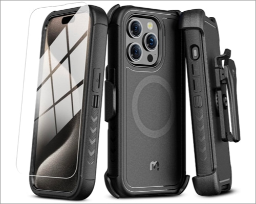 Ami az övcsipesz tokját illeti, az összes Mybat Pro Maverick sorozat esete 360 fokos forgó öv-klipmel érkezik. Ráadásul ez az iPhone 15 Pro Max Belt Clip tok kickstandként is használható videók megtekintéséhez vagy készenléti módhoz való hozzáféréshez az iOS 17 -ben.