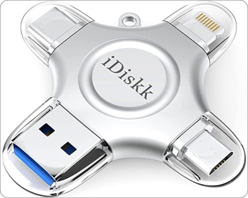 Míg a legtöbb flash meghajtó egy adott adapter, vagy az adapter megrázkódtatása között választja amegkönnyíti az életet. A Flash meghajtó villámcsatlakozóval, mikro-USB csatlakozóval, USB 3.0 csatlakozóval és C típusú csatlakozóval rendelkezik. Használható fényképek és videók átvitelére az eszközök között.