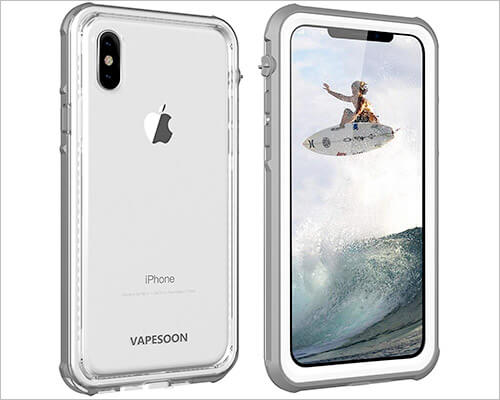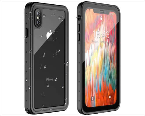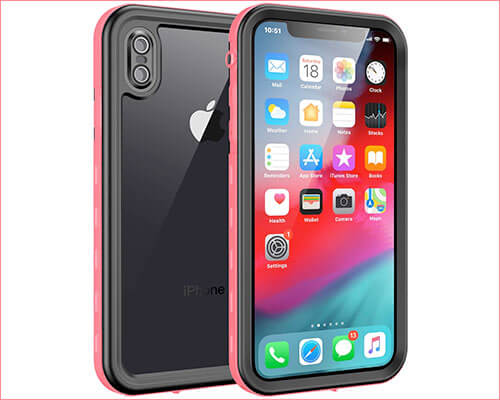 A Fansteck ügye szintén IP68 tanúsítvánnyal rendelkezik, mint a listán szereplő legtöbb eset. Ez csaknem 1000 tesztet teljesített a víz alatt, akár 6,6 lábig, szivárgás nélkül. Ez a teszt az a biztosítás, hogy stressz nélkül kattintson a képekre, és videókat készítsen a víz alatt. A kiváló minőségű anyag megvédi az iPhone X-et a portól, a szennyeződésektől, a karcolástól és a normál esésektől.