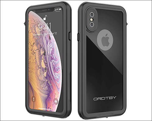 Az Ordtby két vízálló esetet tervezett: fekete és tiszta. Szeretne egy tiszta háttal használni, mivel az a prémium eszközt mutatja be, az Apple logóval mindenki számára látható. A 360 fokos védelem érdekében az Ordtby beépített képernyővédőt ad.
