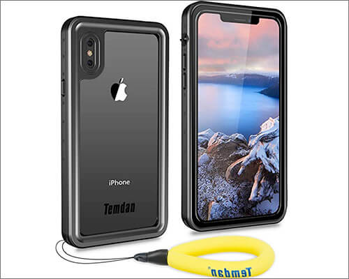 A Temdan vízálló esetet mutat be, amely több előnyt kínál. Az IP68 tanúsított vízálló szabványon kívül ez az eset csuklópánt és úszó hevederhez tartozik; Ez utóbbi tartja az iPhone -t a felszínen lebegve.