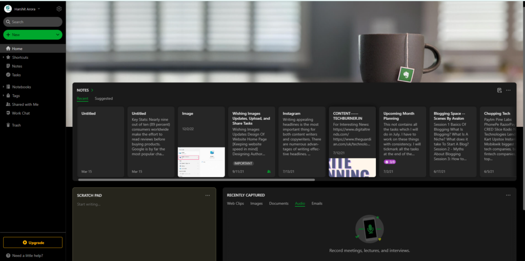 A Windows 11 listájához a legjobb jegyzetkészítő alkalmazásunk utolsó jegyzeteljesítmény-felvételi segédprogramjaÖrdög- Evernote az egy népszerű jegyzeteljesítmény-alkalmazás, amelyhez felhasználhatójegyezze fel az összes ötletet és gondolatotegy tető alatt. Ezzel együtt is felhasználhatóKezelje és szervezze meg az összes feladatát- Mielőtt az elsődleges funkcióiról beszélünk, először beszéljünk meg a felhasználói felületről.