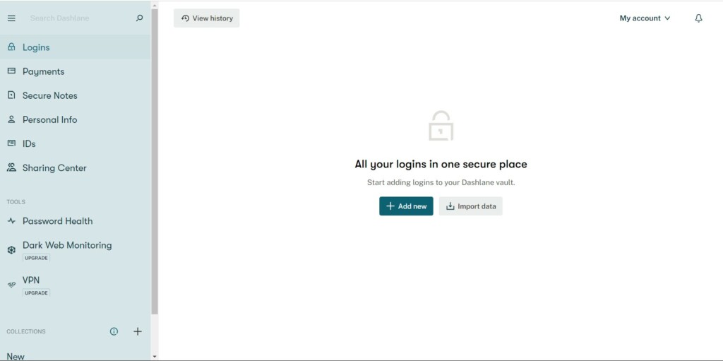 A jelszavak tárolásának és kezelésének megkezdéséhez csak hozzá kell adnia a webbővítményt a böngészőhöz. Kezdve a Dashlane felületével. Van benne anagyon könnyen használható felhasználói felület. Van egy oldalsávja a bal oldalon opciókkal, amely lehetővé teszi a funkciók elérését.