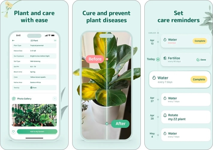 A Planty segítségével az eszközkamera segítségével azonosíthatja a növényeket, majd megismerheti a legjobb módszereket, hogy gondoskodjon nekik, mindezt egy helyen. Rövid összefoglalót kap az egyes növényekről, majd kibővítheti az öntözési útmutatókat az öntözés, a nap, a hőmérséklet, a páratartalom, a talaj, a műtrágya, az újratervezés és a toxicitás érdekében.