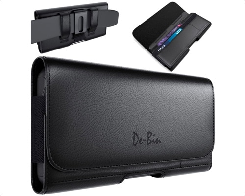 A Debin a legjobb bőr iPhone hüvelyét kínálja a futáshoz, ideális az iPhone 14 és 14 Pro -hoz. Közepes méretű tokja van, mágneses kapocshoz rögzítve, és a tasak elején integrált kártyatartó. Viselheti az öveden, erős nejlon öv -kapocs és övhurkok segítségével.