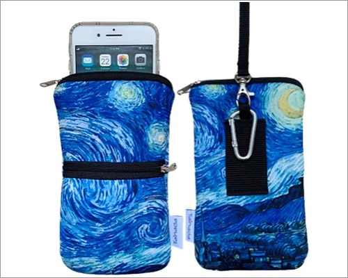 Ha a Van Gogh Starry Night rajongója vagy, ez a vízálló tasak ideális lesz az iPhone -hoz. A kiváló minőségű neoprén-építő anyagnak köszönhetően a por, dudorok, karcolások és nedvesség ellen őrzi. Emellett kettős cipzárral rendelkezik, hogy a telefonját és az egyik oldalsó rekeszét kártyákhoz, készpénzhez, fejhallgatóhoz és másokhoz tartsa.