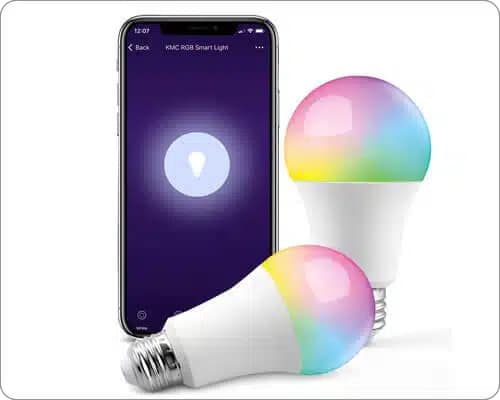 A KMC Smart LED -es izzó biztosítja az FCC, CE, ROHS tanúsítást, amely biztosítja a tartósságot. A felhasználók az okostelefon -alkalmazáson keresztül bárhonnan vezérelhetik az izzót; Az internethez való csatlakozáskor az izzó bárhonnan elérhető. A Smart Life alkalmazás lehetővé teszi a családból származó több felhasználó számára az izzót.