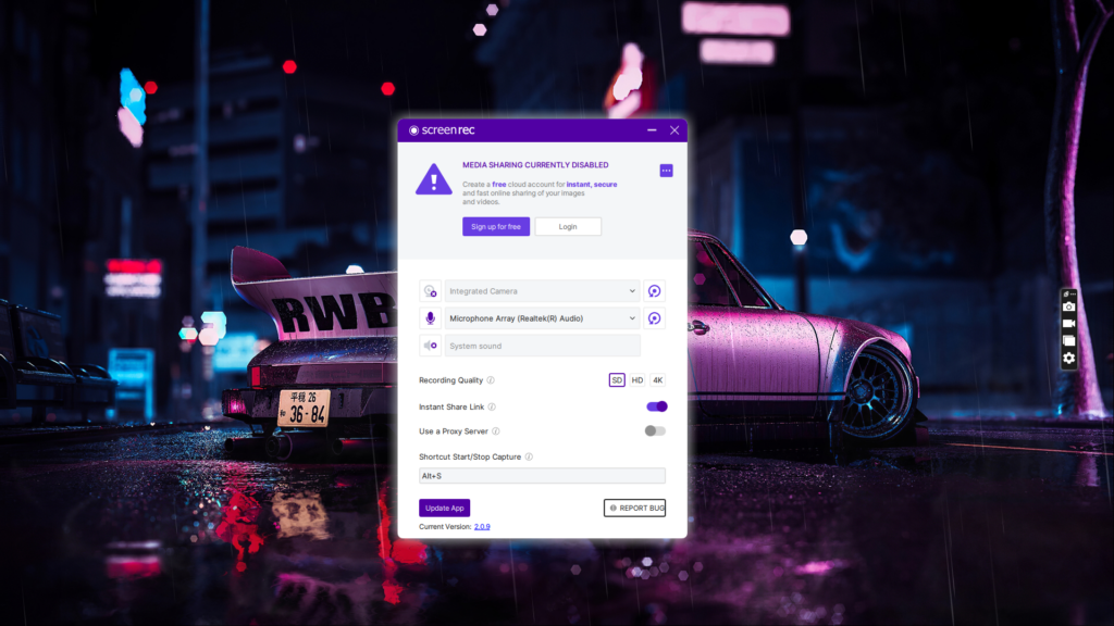 Ezt leszámítva azt is megtehetikapja meg az azonnali megosztási linketmegosztani valakivel a képernyőképet. Végül, de nem utolsósorban a ScreenRec szoftver is lehetővé teszirögzítse a Windows 11 számítógép képernyőjét, audio és webkamera. Rögzítheti számítógépe képernyőjét SD, HD és akár 4K felbontásban is.