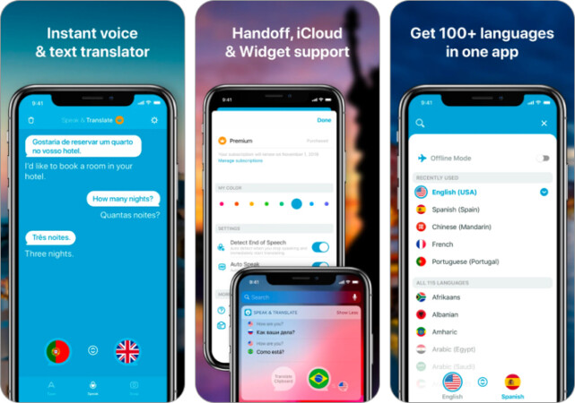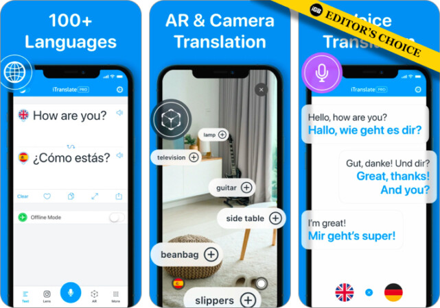Az egyik legnépszerűbb fordítási alkalmazás, az Itranslate több mint 100 támogatott nyelven lefordíthatja a szavakat, kifejezéseket és szöveget. Hallgathat a fordításokat mind férfi, mind női hangon. Váltás a különböző nyelvjárások között.