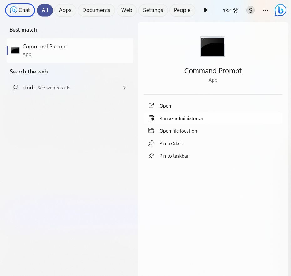 1. lépés -A Windows keresősáv típusábanCMDÉs kattintson a KattintsonFuttasson adminisztrátorkénta jobb oldalról.
