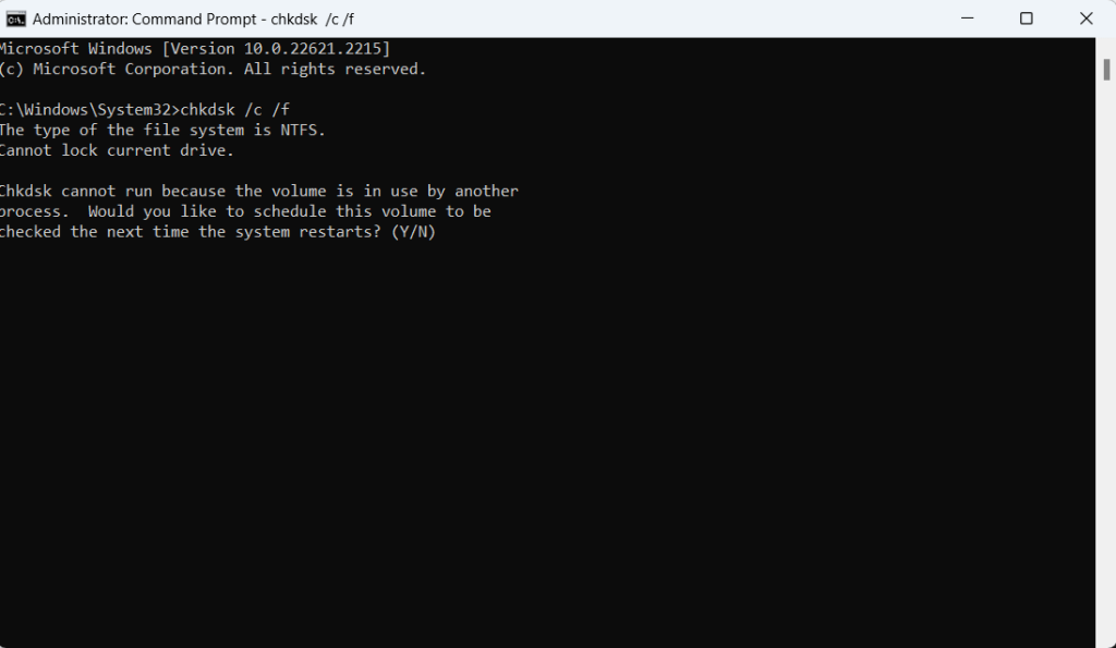 2. lépés -Amikor aParancssorkinyitja, írja bechkdsk /c /fés nyomja megBeír-
