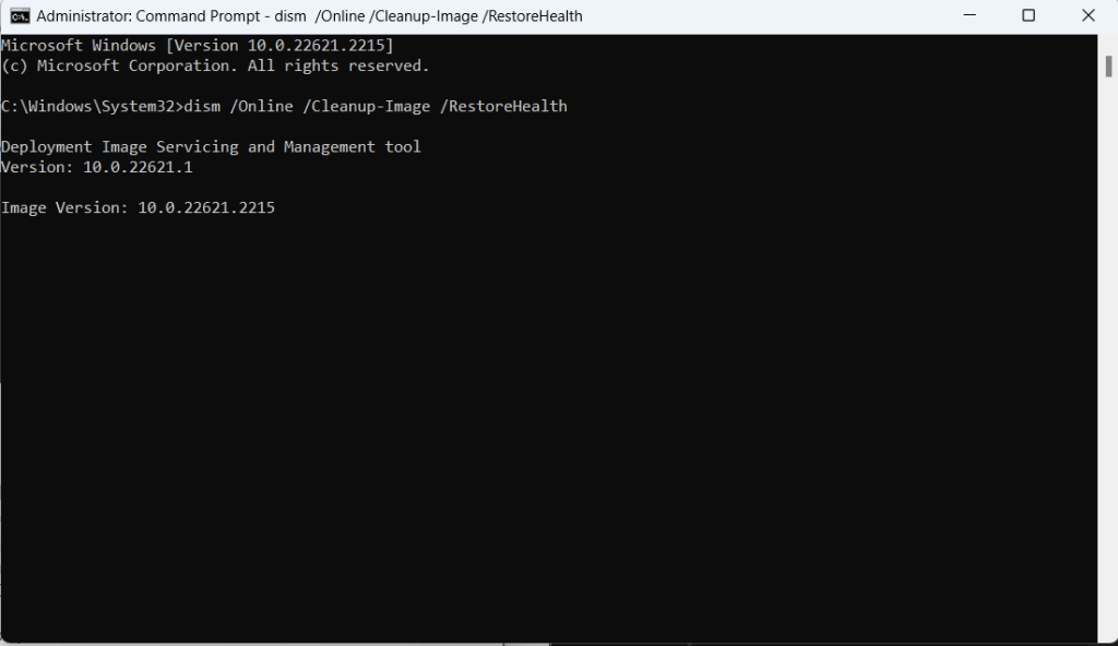 2. lépés -Amikor a parancssor megnyílik, írja bedism /Online /Cleanup-Image /RestoreHealth