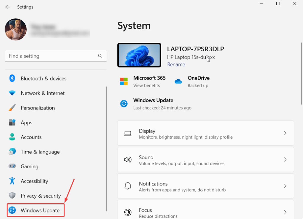 2. lépés -A bal oldali ablaktáblából kattintsonWindows frissítés, amely az utolsó lehetőség.