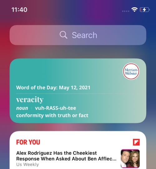 Valószínűleg az egyik kötelező és legjobb iOS widget, amely rendszeresen, részletekben szolgáltat információkat közvetlenül a kezdőképernyőn. Válasszon a napról készült képet, a legjobb olvasmányt vagy más funkciókat különböző méretekben.