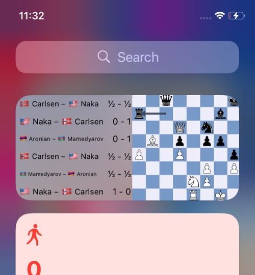 Ezzel a widgettel áttérhet az élő és a legutóbbi sakkversenyekről GM-szinten, és minden fordulóról és játékról tájékoztat az iPhone kezdőképernyőjén. Három méretben kapható, döntse el, mennyi helyet szeretne adni a widgetnek.