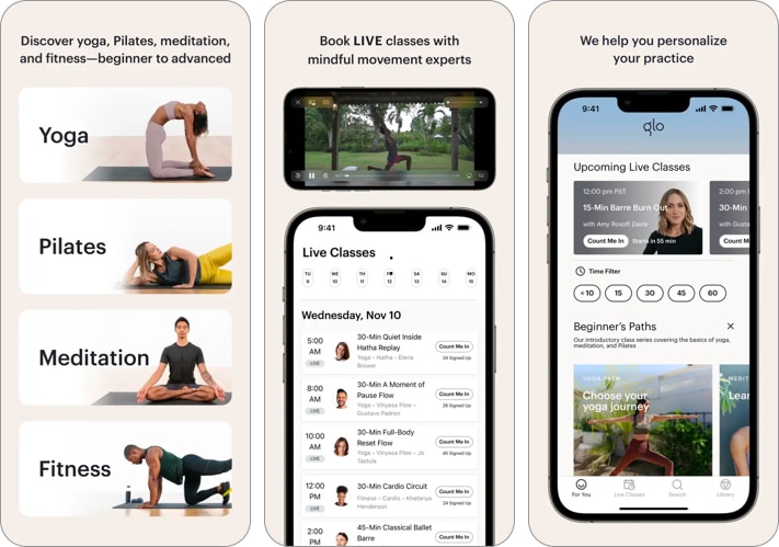 3. GLO jóga és meditációs alkalmazás - Vegyen részt élő órákon
