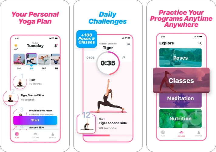 A Daily Yoga a legnépszerűbb iPhone jóga alkalmazás, amely személyes edzéstervet kínál az Ön igényeihez igazított napi kihívásokkal. Rutinokat és heti új osztályokat biztosít a fogyáshoz, a rugalmasság és a fizikai fitnesz javításához, valamint a stressz csökkentéséhez. Ezenkívül választhatja az irányított jóga kurzusokat a fizikai és mentális wellness fokozása érdekében.
