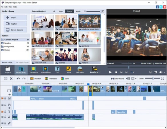 Támogatja az összes szokásos formátumot, amellyel foglalkozhat, mint például az MP4, DVD, AVI, MOV, VOB, WMV, MKV, WEBM stb. Médieket importálhat, rögzíthet felvételeket egy csatolt kamerából, vagy rögzítheti az asztali képernyőt. Ezután hagyja, hogy a kreatív gyümölcslevek folynak, amikor vágnak, vágnak, osztanak, egyesülnek, forgatnak, és keverjék össze a klipeket a kívánt eredmény elérése érdekében. Az AVS -nek több mint 300 innovatív hatása, átmenete és átfedése van, hogy a videó kiemelkedjen.