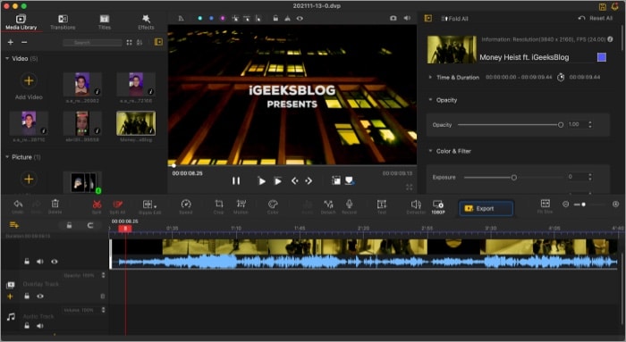 Plusz, 60+ átmeneti előre beállított előre beállított előre beállított előre beállított előre beállított átjárók, videóhatások, osztott képernyő, PIP mód, zöld képernyő és bármi. És bár testreszabhatja a dolgokat a T -hez, a Videoproc Vlogger fantasztikus preset -eket is tartalmaz a gyorsabb és simább szerkesztés érdekében.
