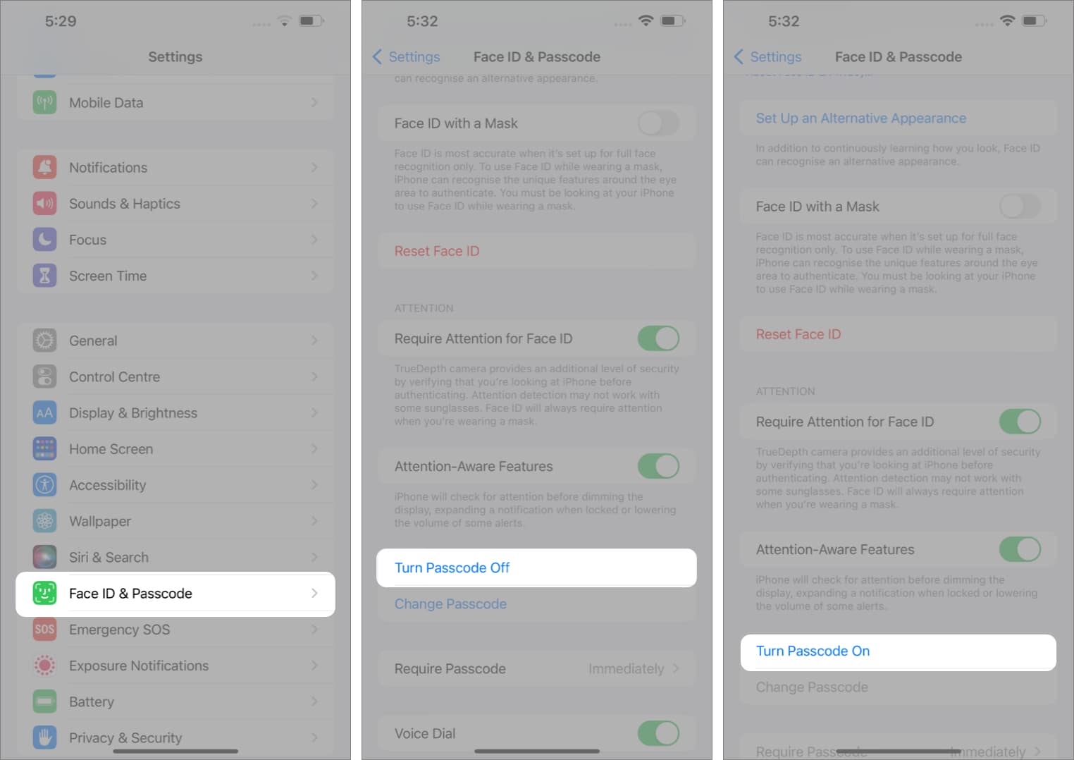 Az iPhone jelszavának letiltása, majd újbóli engedélyezése számos felhasználó számára segített megoldani ezt a problémát. Ugyanezhez kövesse az alábbi lépéseket: