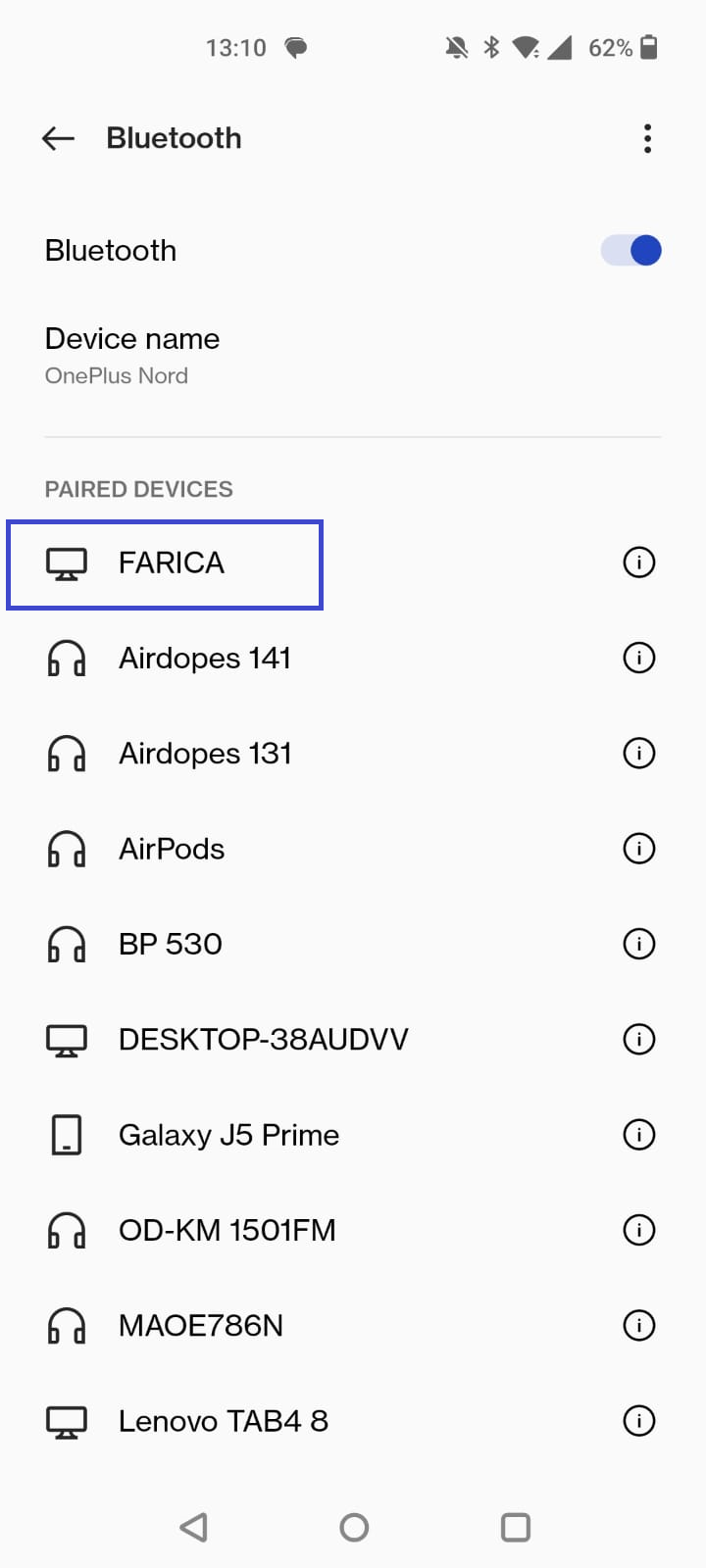 - Végül látni fogja a számítógépét aPÁROSÍTOTT ESZKÖZÖKmobil Bluetooth.