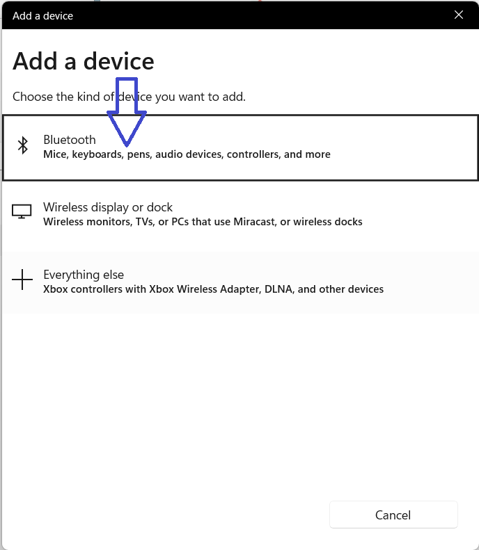 - Az Eszköz hozzáadása ablakban kattintson a Bluetooth szakaszra.