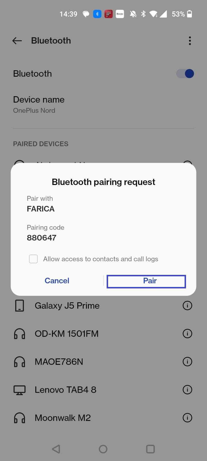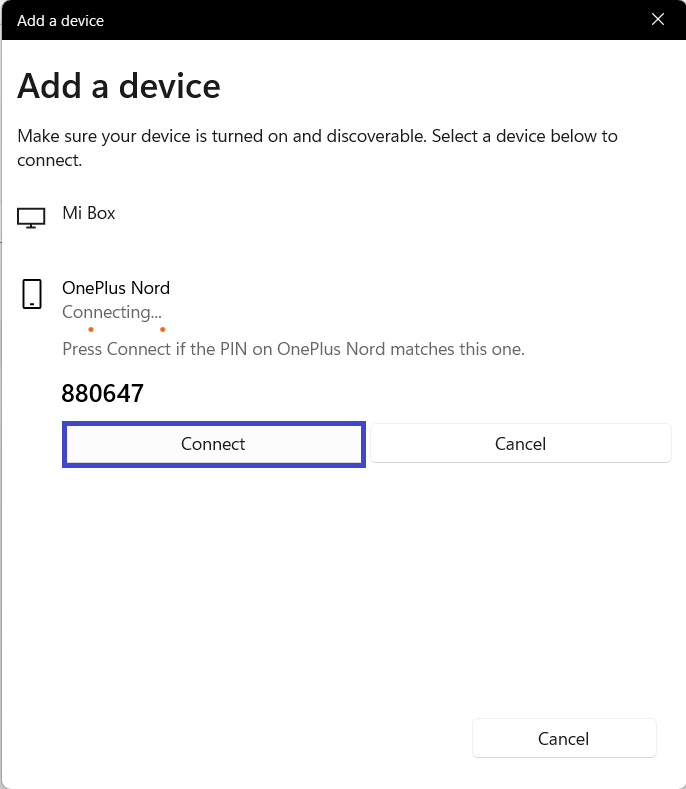- Ezután kattintson a gombraCsatlakozásgombra a számítógépen, és ezzel egyidejűleg kattintson a gombraPárgombot az Android telefonján.