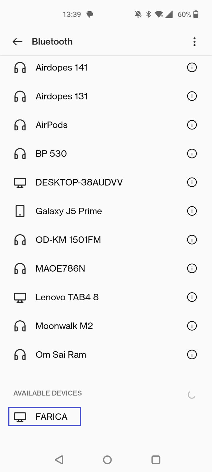 - Ezután kattintson az eszköz nevére, amely a képernyőn láthatóElérhető eszközökszakaszt az Android telefonján.