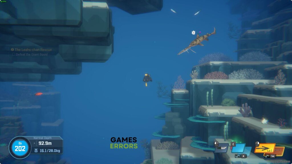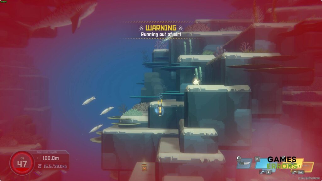 Néhány dolgot is tartson a fejedben. A Dave the Dive -ben nincs egészségügyi bár. Az oxigénszint a végső egészségügyi mutató. Ha ütés vagy tengeri lények támadásait kap, akkor elveszíti az oxigén mennyiségét. Miután elfogyott belőle, meg fog halni.