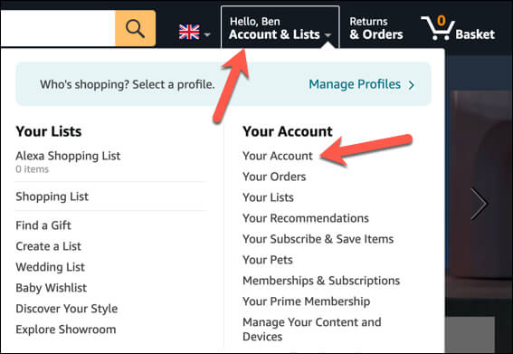 - Az Amazon -fiók törlése- Drasztikusnak hangzik, de ez a módszer a legközelebb, hogy törölje az Amazon megrendelés előzményeit, hogy megakadályozza, hogy mások számára látható legyen. Mindazonáltal mindent elveszít a meglévő Amazon -fiókján, beleértve a korábbi digitális vásárlásokat is, tehát biztosan meg kell győződnie arról, hogy ez a legjobb megoldás a körülményeihez.