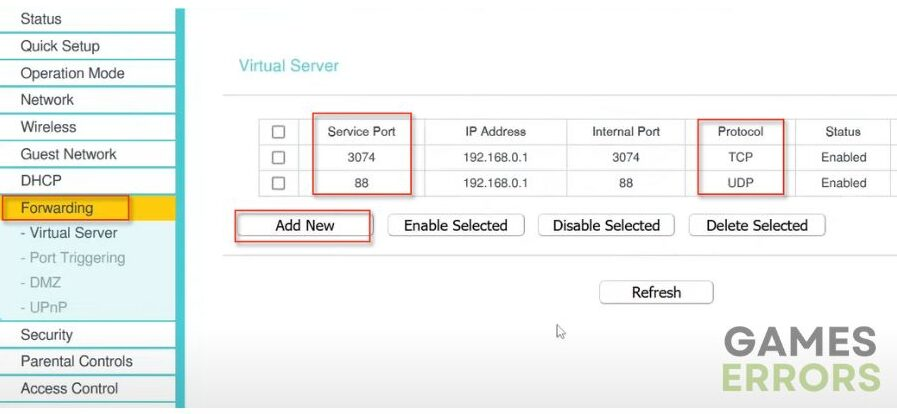 4. Ismételje meg a folyamatot mindaddig, amíg be nem adta a játékplatform összes portját a következőn keresztülÚj hozzáadásaopció. Kérjük, vegye figyelembe, hogy ez a folyamat az útválasztó konkrét modelljétől függ.