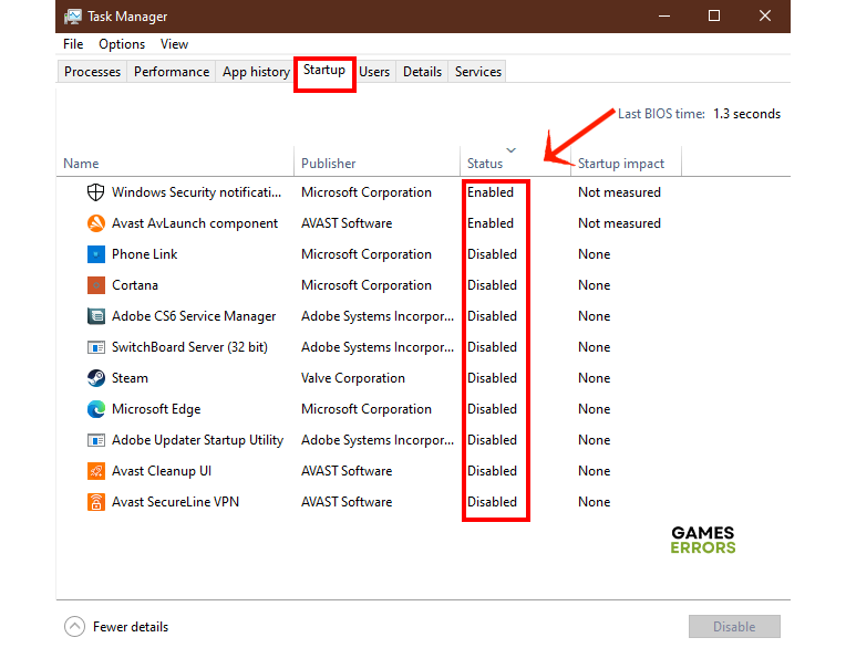- Ezután le kell tiltani az indítási alkalmazásokot. Kattintson aIndulásfül.