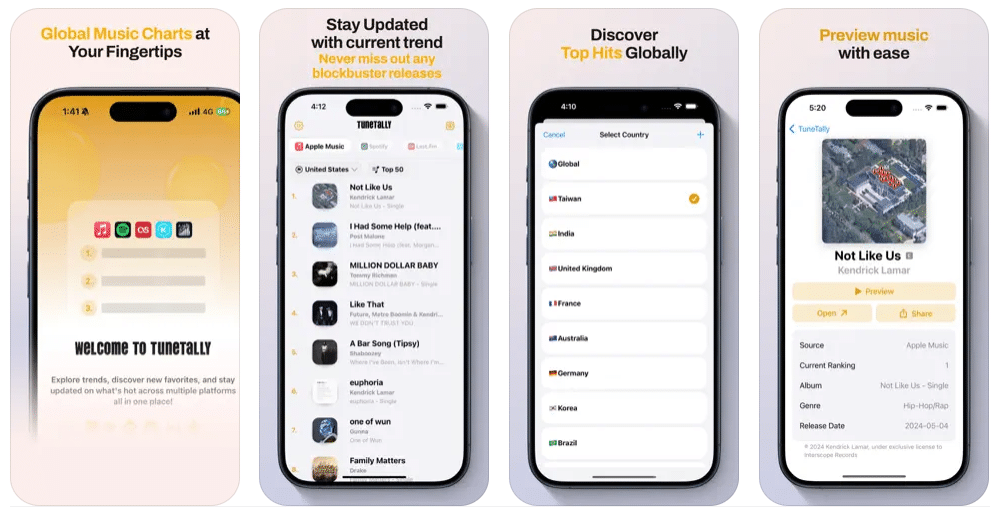 Zene szerelmesei, örülj! A Tunetally egy olyan forradalmian új alkalmazás, amelynek célja a földrajzi és szolgáltatási akadályok lebontása, egyablakos üzletet kínálva a világ legfontosabb dalának felfedezésére és összehasonlítására. Függetlenül attól, hogy egy kemény Spotify-felhasználó vagy egy dedikált KKBox hallgató, a Tunetally áthidalja a rést, és bemutatja a legforróbb zeneszámok kurátus áttekintését a különféle zenei streaming platformokon.