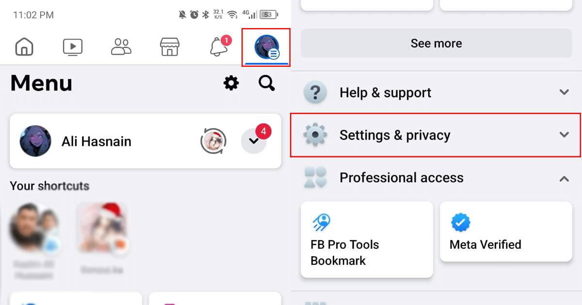 - Nyissa meg a Facebook alkalmazást, és érintse meg a menü gombot (három vízszintes vonal) a jobb alsó sarokban.