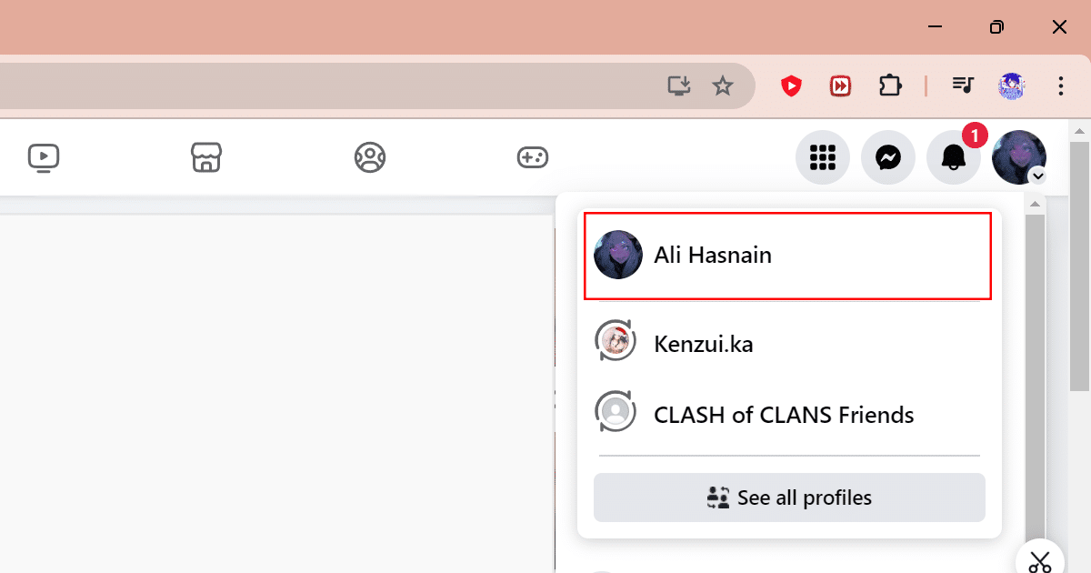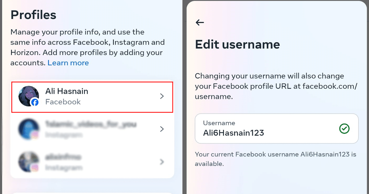 - Válassza ki azt a profilt, amelyre látni szeretné a felhasználónevet (ha több profilja van).