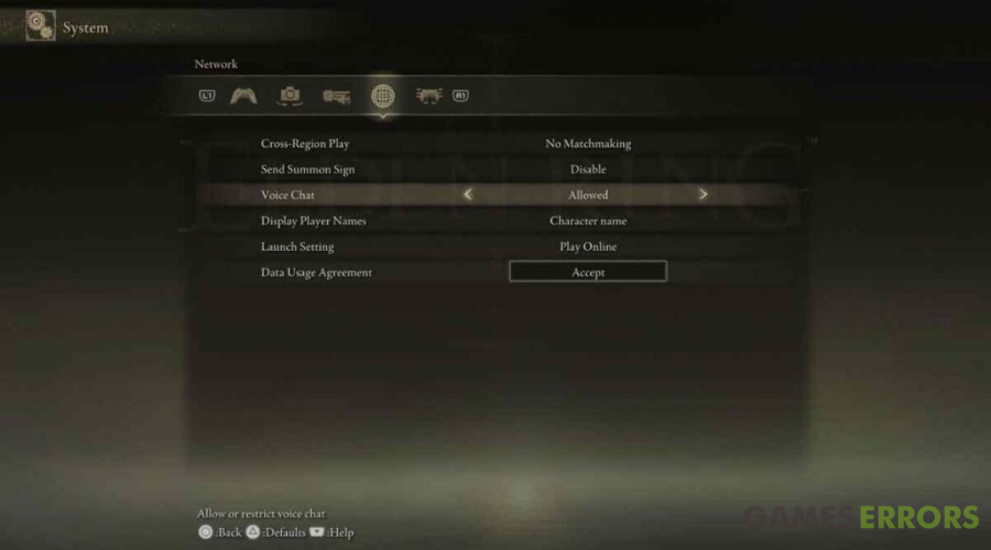 - Az audiocsevegés bekapcsolásához lépjen a következőre:Beállítások elemre>Hálózat> állítsa beHangcsevegéshogyEngedélyezett.