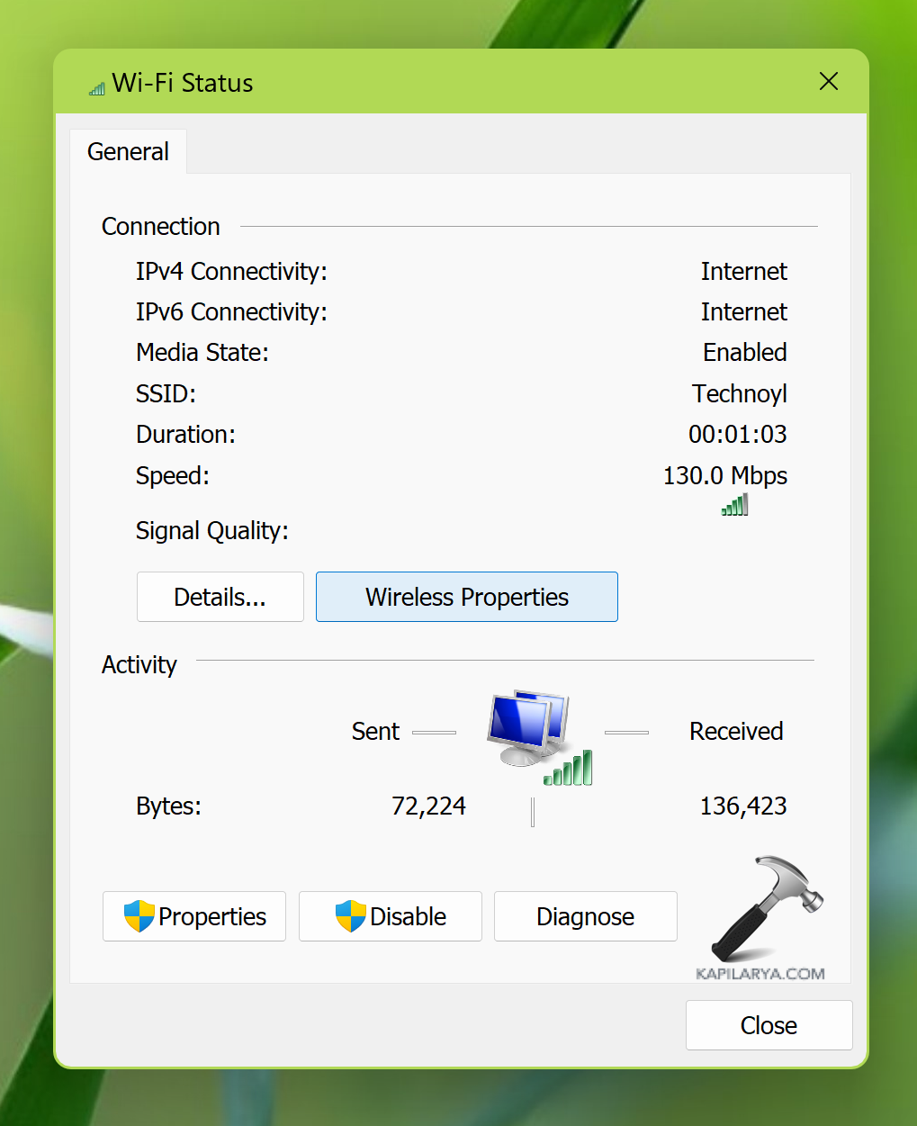 4. Ezután kattintson a Vezeték nélküli tulajdonságok elemre.