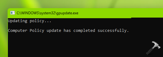 + Rgombok és típusgpupdate /forceparancs. Néhány pillanat alatt frissíti a számítógépes szabályzatot.