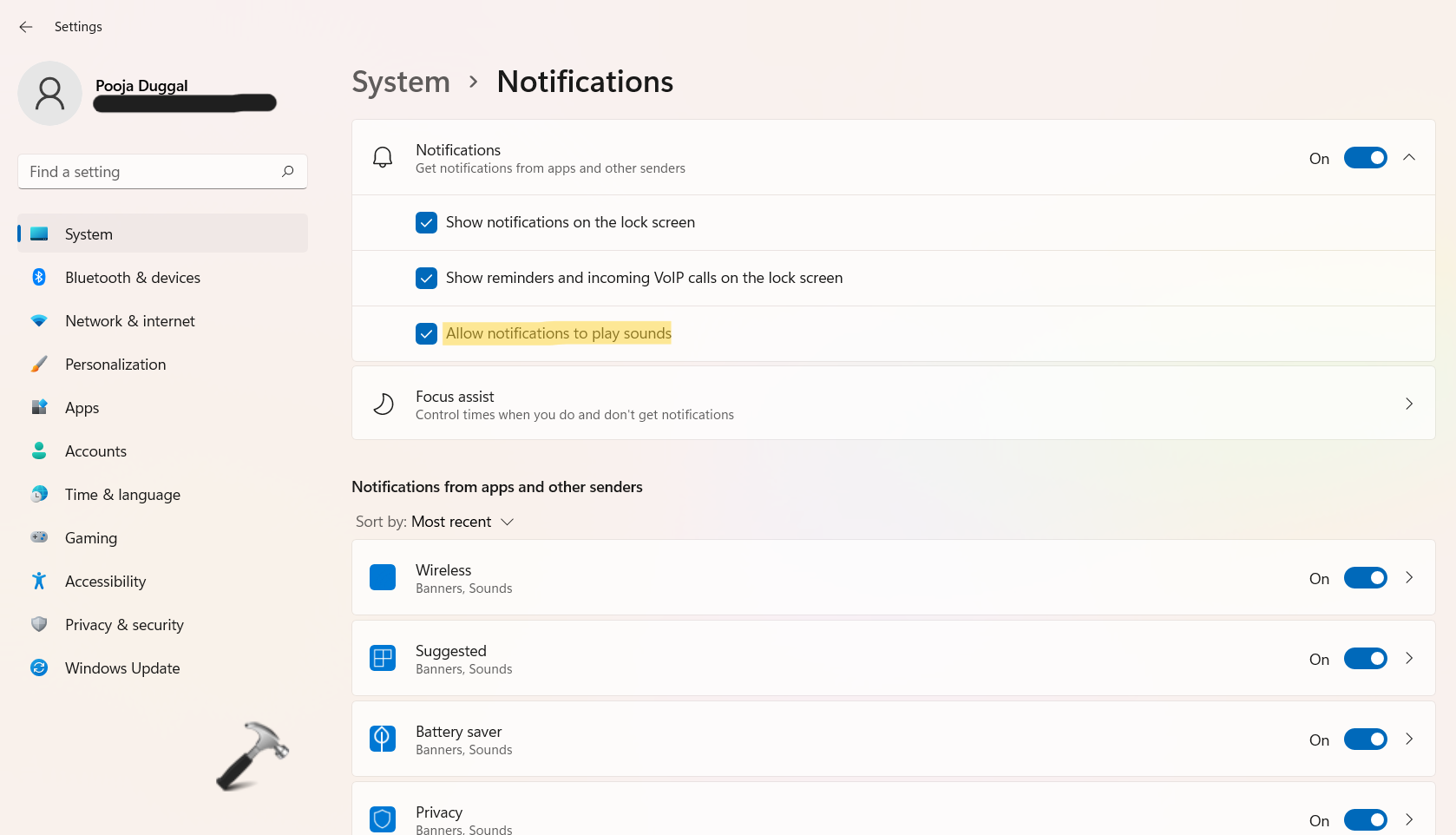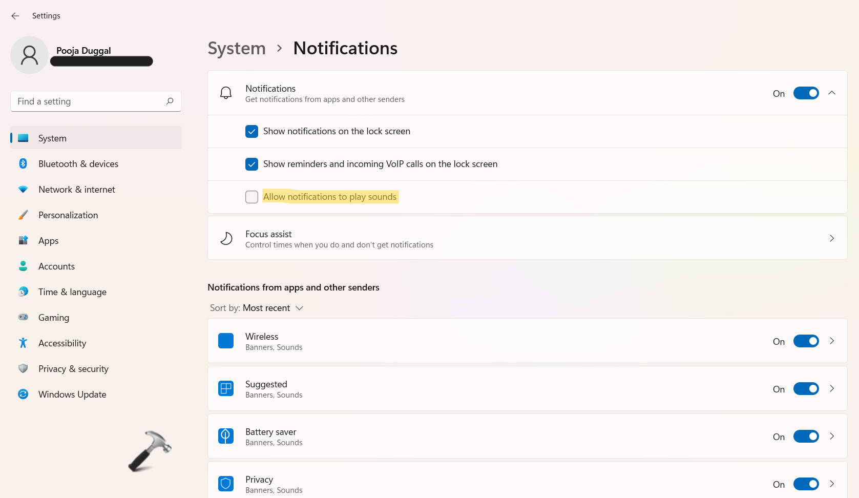 Tehát így engedélyezheti/letilthatja az értesítési hangokat a Windows 11 -ben.