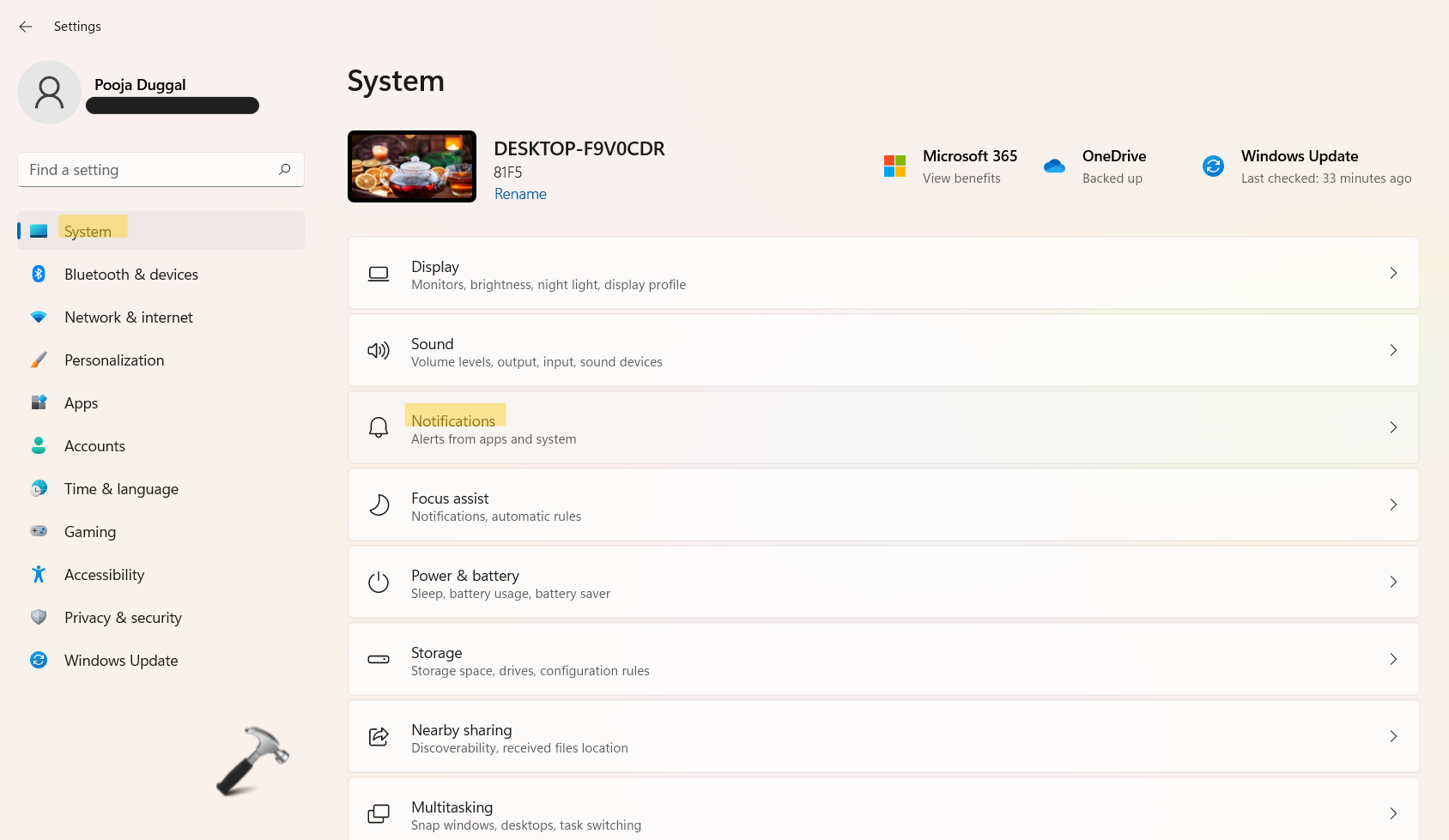1.NyitottBeállításokAWindows + Iegymáshoz a billentyűzeten, és menjen aRendszerfül. Ezután kattintson a gombraÉrtesítésekjelen van a jobb oldalon.