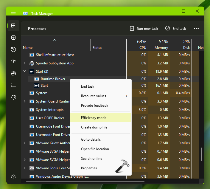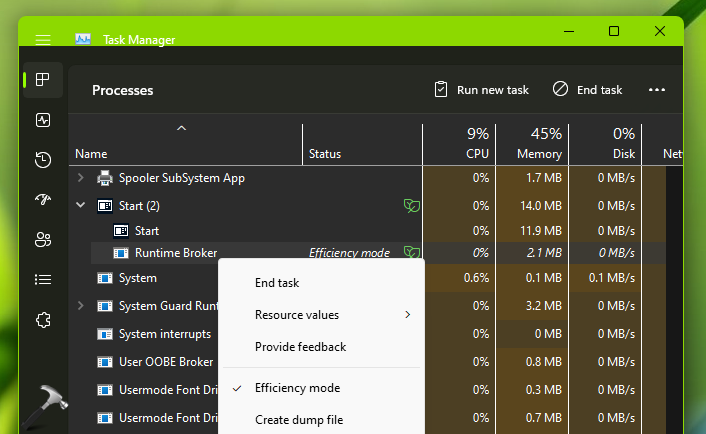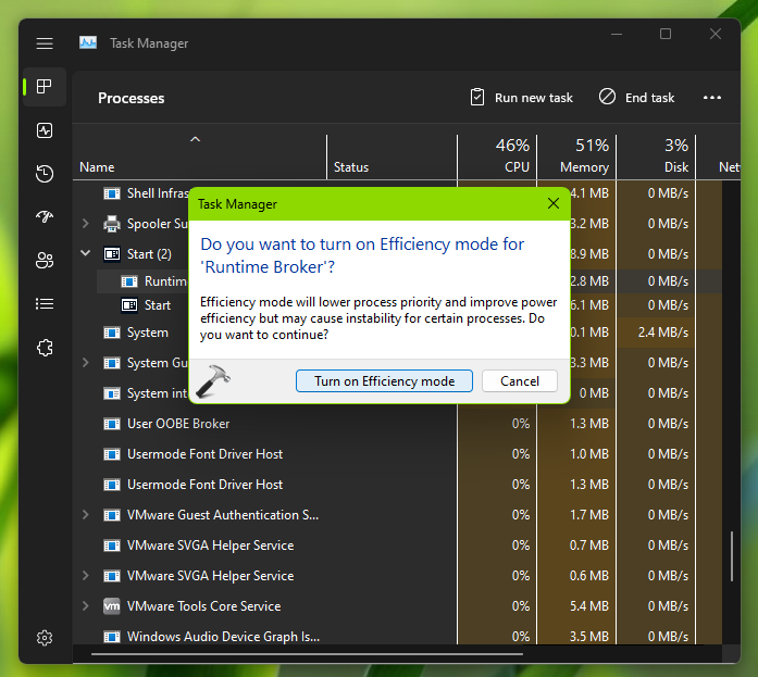 Engedélyezze a Hatékonysági módot az alkalmazáshoz vagy folyamathoz a Windows 11 rendszerben