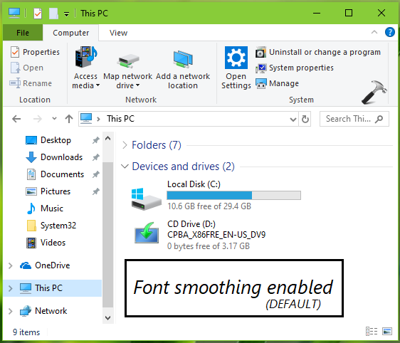 Indítsa újra a rendszert, hogy a változtatások hatékonyak legyenek. Újraindítás után látni fogja, hogy a betűtípus simítása le van tiltva.
