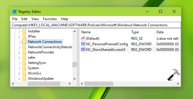HKEY_LOCAL_MACHINESOFTWAREPoliciesMicrosoftWindowsNetwork Connections