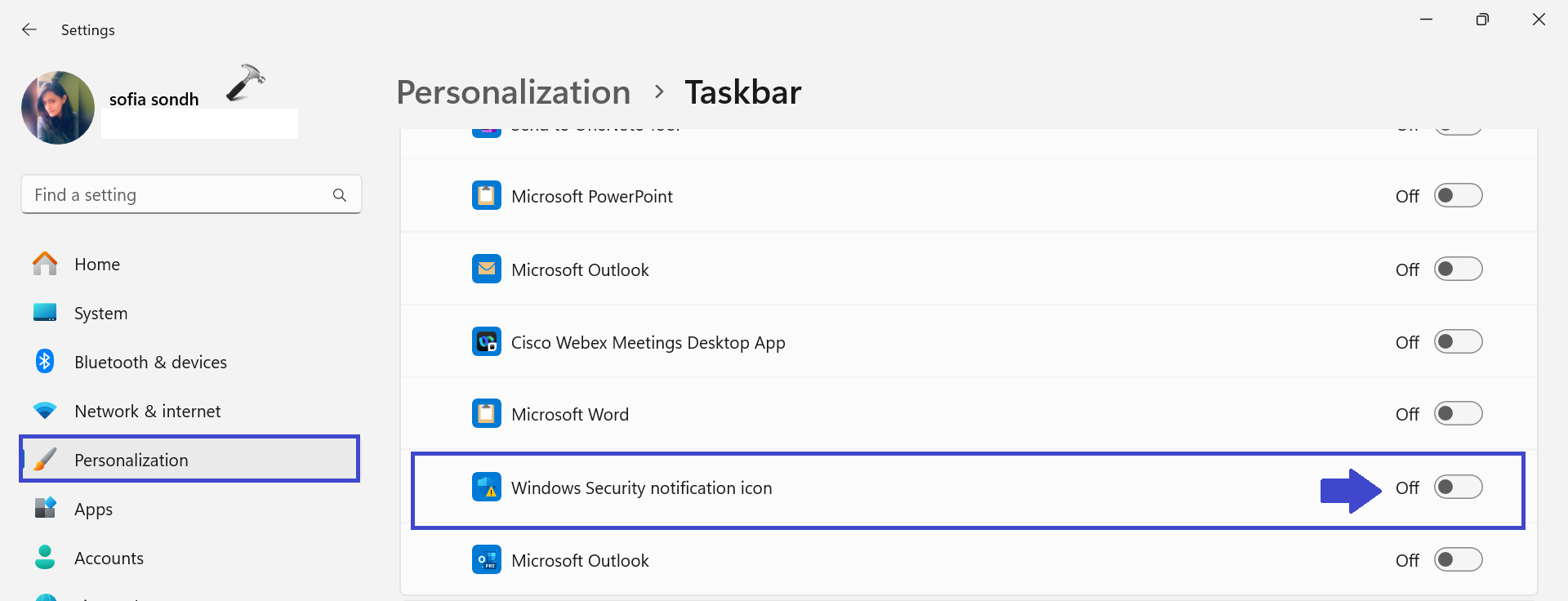- Más rendszer tálca ikonok alatt kapcsolja be vagy kikapcsoljaWindows biztonsági értesítési ikonAz ikon engedélyezése vagy letiltása a tálcából.