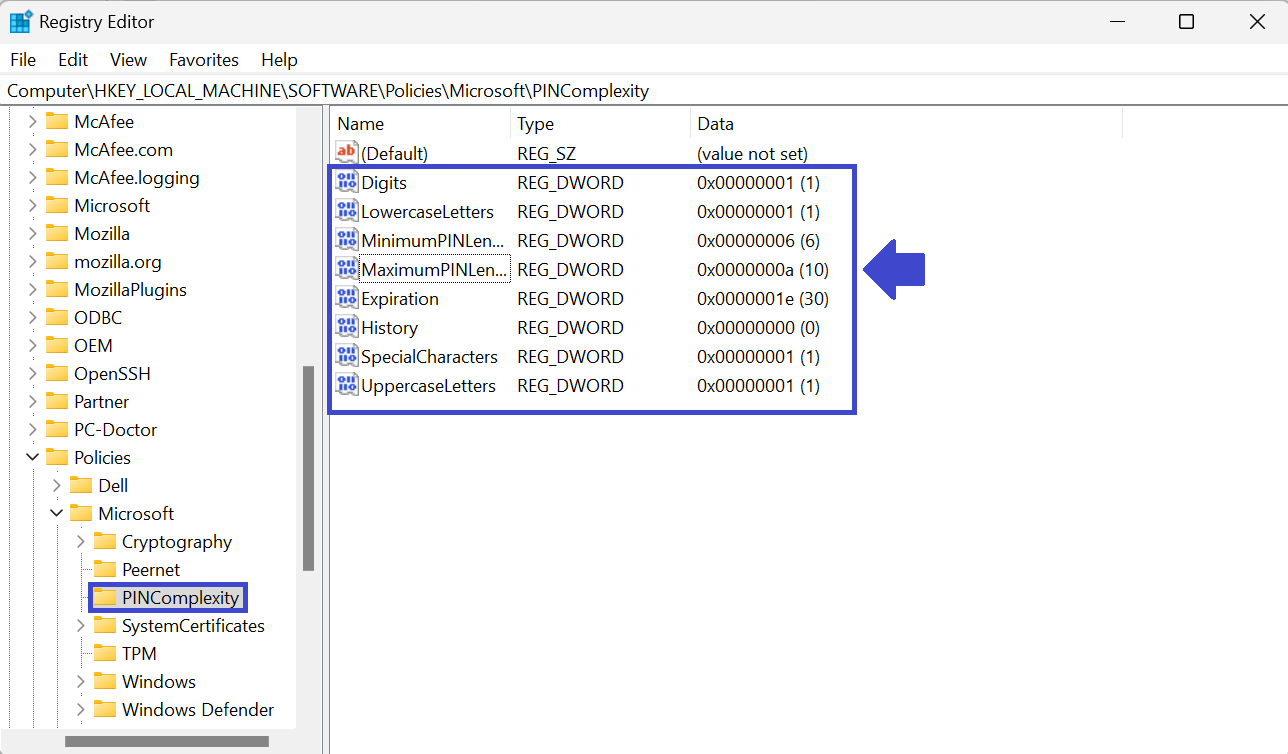 ComputerHKEY_LOCAL_MACHINESOFTWAREPoliciesMicrosoftPINComplexity