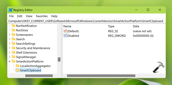 HKEY_CURRENT_USERSoftwareMicrosoftWindowsCurrentVersionSmartActionPlatformSmartClipboard